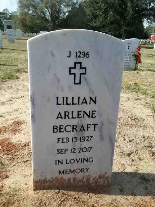Buried: - Andersonville National Cemetery, Andersonville, Sumter Co, GA 3 FamilySearch ID: GH8L-RFJ Find A Grave ID: 185913574Spouse: Myron Alson "Mike" "Moose" Becraft [5762] (1923-2000)