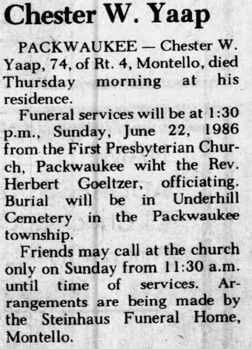 Funeral services were conducted from the Hardell Funeral home, Montello on Sunday afternoon by the Rev. Peter Weaver, Methodist minister, Montello with burial in the Hillerest cemetery.