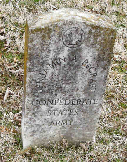 • He appeared on the 1880 Census census in 1880 in Wythe, Virginia, United States. Benjamin A Becraft, self, Married, male, W, 50, MD, StoneMason, MD, MD