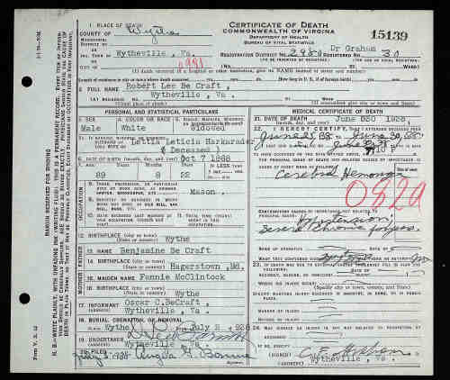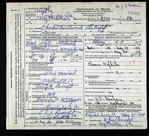 Died: 30 Jun 1938 - Wytheville, Wythe, Virginia, United States 8 Buried: 2 Jul 1938 - East End Cemetery, Wytheville, Wythe, Virginia, United States FamilySearch ID: L5PD-3D5 Find A Grave ID: 250312760Spouse: Lettitia Harkrader [4298] (1870-1910) Marr: 22 Aug 1890 - Wythe, Virginia, United States 5
