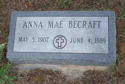 Graveside services were conducted Wednesday afternoon at Butler's Chapel Cemetery in Berkeley County for Mrs. Anna May Becraft, 82, a guest of Crownsville (Md.) Hospital Center, formerly of Baltimore, Md., who died Sunday in Greater Baltimore Medical Center. The Rev. Walter Bowers officiated, arrangements were by the Melvin T. Strider Colonial Funeral Home.