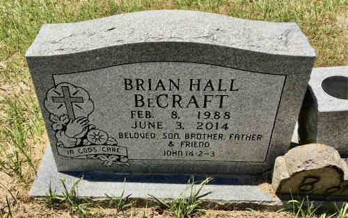 .• His obituary was published in the Findagrave.com. Brian Hall BeCraft, 26, of Waco, Texas passed away on Tuesday, June 3, 2014, at his residence. Burial at Concord Cemetery is