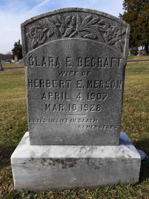 Buried: - Union Cemetery, Burtonsville, Montgomery, Maryland, United States 1 FamilySearch ID: G4YB-CJ1Spouse: Herbert Eugene Merson [717] (1898-1948) Marr: 18 Nov 1921 - Montgomery, Maryland, United States 9