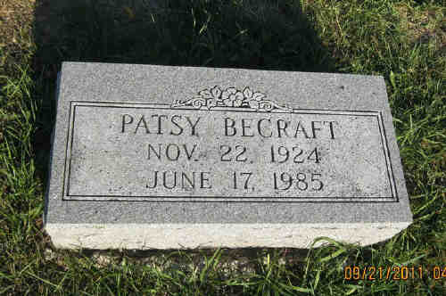 He was preceded in death by his parents, wife, Patsy Ruth Becraft; sister, Jewell E. Becraft; brothers, Lowell H. , Millard W., Robert L. and Albert E. Becraft.