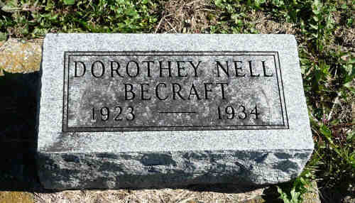• She appeared on the 1930 Census census in 1930 in Center, Hancock Co, IN. Dorothy N. Becraft age 6 listed with father Albert Becraft age 46 listed as head of household and mother Maude E. age 32 and siblings Ruby L age 15 and Helen L age 3.