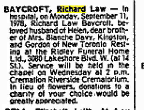 Died: 11 Sep 1978 - New Toronto, Etobicoke Township, York Co, Ontario, Canada![]()