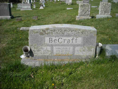 SonJack D Becraft M 10 Virginia. • His obituary was published. Funeral services for Frank James BeCraft, age 73, will be held in the Chapel of the Grubb Funeral Home tomorrow (Friday) morning at 11:00 o'clock. Conducting the memorial service will be the Rev. Wesley Huff, pastor of the Wytheville Baptist Church, assisted by the Rev. Robert Smith, pastor of St. Paul Methodist Church, and the Rev. Wallace Fowler, a retired Methodist minister, who recently served as interim pastor of the local Baptist Church. The interment will be in St. John's Cemetery.