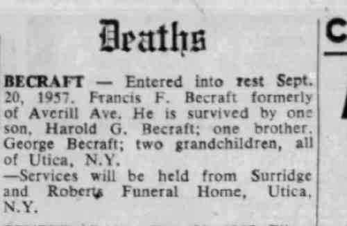 Died: 20 Sep 1957 - Rochester, Monroe Co, NY 7![]()