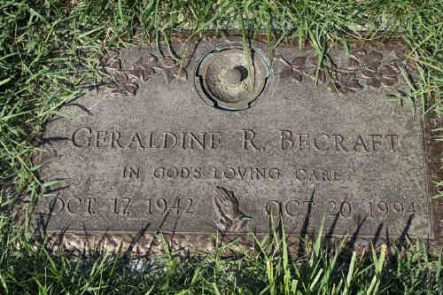 Burial Notes: Wife - Geraldine R "Gerry" Becraft