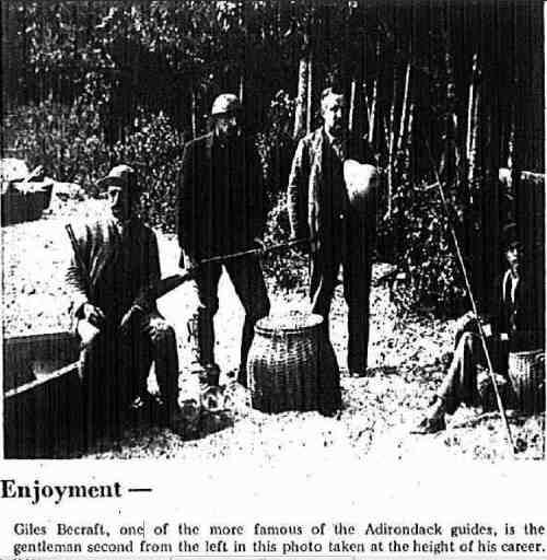 From his obituary: "Mr. Giles Becraft of Morehouseville, Hamilton County, and Supervisor from that town, was found dead in the road near Piseco on Saturday morning. Mr. Becraft had been attending the meeting of the Board of Supervisors and was returning to his home. He had been suffering with heart trouble for many years, which was the cause of his sudden demise. He leaves a widow, five children and a mother to mourn his death. His father died a year ago*. His mother is a resident of Ilion, Herkimer County. Mr. Becraft had been for many years a guide, and was considered by all to have a better knowledge of the woods than any man who undertook the profession. He will be greatly missed by visitors to the Adirondacks, and mourned by a large circle of friends."