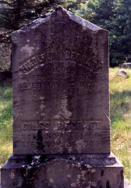• He appeared on the Federal census in 1870 in Morehouse, Hamilton, New York, United States. Frederick Becraft, age 47, farmer, property 1000, born NY; Matilda, age 41, keeping house; Giles, age 19, laborer; Idora, age 15; Emma Jane, age 11.