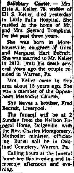 Joanne Murray (lajkam@gmail.com), The Becraft Family of Morehouse (http://hamilton.nygenweb.net/bios/Becraft1.html), 14 Oct 1952.