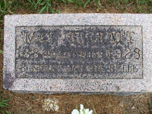 Ida Belle Becraft, age two days, died at the home of her parents, Mr. and Mrs. Frank Becraft of 207 Wenger Avenue, Friday morning at 11:45 o'clock. She is survived by three brothers and four sisters, all at home. Funeral services to be Saturday and burial will be in Pleasant View Cemetery, north of Warsaw, IN.