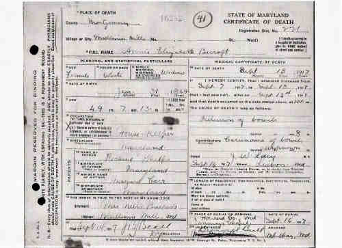 • She died on 13 Sep 1917 in Montgomery, Maryland, United States. Maryland Death Certificate #16282.
