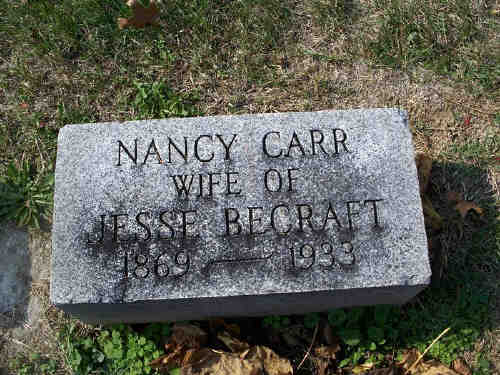 Burial Notes: Wife - Nancy J "Nannie" Carr