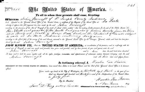 .• He owned land Document #8055 on 30 Jun 1837 in La Porte, St. Joseph Co, IN. 80 acres