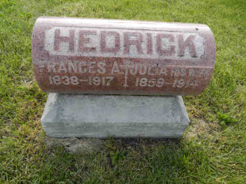 Buried: - Augusta Cemetery, Augusta, Hancock Co, IL 3 Find A Grave ID: 112002582Spouse: Francis A Hedrick [7136] (1838-1917) Marr: 31 Oct 1882 - Hancock Co, IL 4
