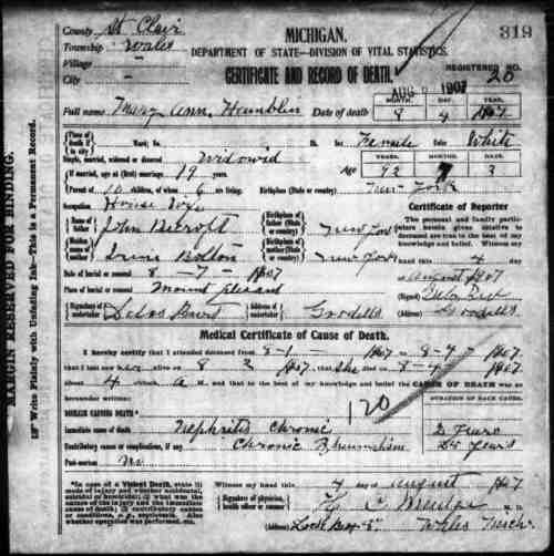 Died: 4 Aug 1907 - Wales Township, St. Clair, Michigan, United States Buried: - Mount Pleasant Cemetery, Wales Township, St. Clair Co, MI 2 FamilySearch ID: L63C-G8S Find A Grave ID: 110978664