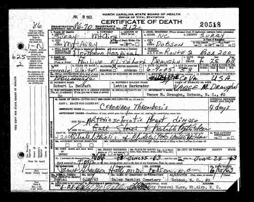 Reference Number:v 20B cn 20518. • She died on 25 Jun 1963 in Mt. Airy, Surry, North Carolina, United States. name: