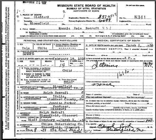 1 Missouri State Archives, Missouri Death Certificates 1910-1957.