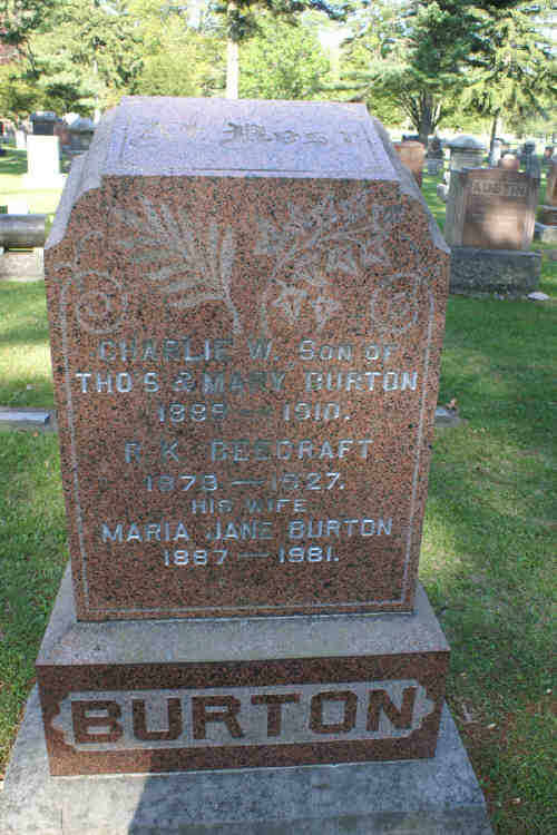 Buried: - Oakwood Cemetery, Simcoe, Norfolk, Ontario, Canada 7 Find A Grave ID: 45425928Spouse: Maria Jane Burton 7 [10100] (1887-1981) Marr: 12 Nov 1913 - Simcoe, Norfolk, Ontario, Canada