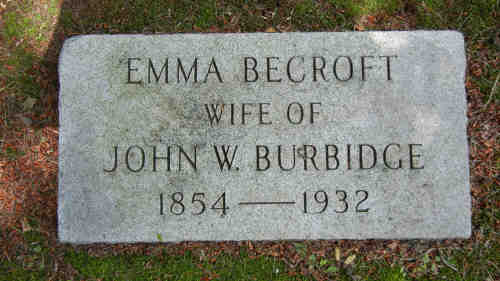 Second of ten children of James Henry Becroft Sr and Mary Jane Whittaker. She married John William Burbidge about 1877. They had five children and settled in Meriden, CT. Mary Elizabeth (Miller), Bertha Rosena (Knapp), Charles Henry, Edith Madeline (Burt) and Ethel Isabel (Miller). 1