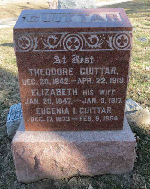 Buried: - Walnut Hill Cemetery, Council Bluffs, Pottawattamie, Iowa, United States 3 FamilySearch ID: LL9W-V8T Find A Grave ID: 80926034Spouse: Theodore Guittar [4368] (1842-1919) Marr: 20 Dec 1869 - Council Bluffs, Pottawattamie, Iowa, United States