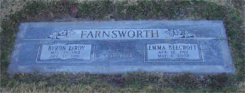 Buried: - City of Mesa Cemetery, Mesa, Maricopa, Arizona, United States 4 FamilySearch ID: KWCV-QCL Find A Grave ID: 63344883Spouse: Byron Leroy Farnsworth 10 [3597] (1912-1991) Marr: 6 Apr 1936 - Colonia Pacheco, Casas Grandes, Chihuahua, Mexico