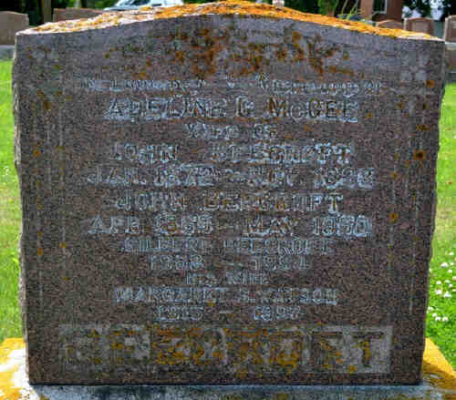 Buried with husband John Beecroft Sr. Not listed on the headstone but documented by the Huron County branch of the OGS.