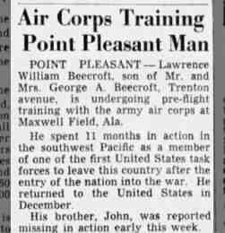 • Military: 25 Feb 1943. Article from the Asbury Park Press, Asbury Park, New Jersey. Training.