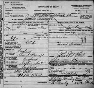 Born: 2 Mar 1852 - Brooklyn, Downigton, , PA 8 Christened: Died: 30 Aug 1924 - Philadelphia, Philadelphia, Pennsylvania, United States 2 Buried: 6 Sep 1924 - Philadelphia, Philadelphia, Pennsylvania, United States 2 FamilySearch ID: GS48-GLWSpouse: Mary McGuigan 2 [12736] (1864- ) Marr: 19 Dec 1889 - Philadelphia, Philadelphia, Pennsylvania, United States