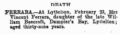 • Her obituary was published on 23 Feb 1907 in Lyttelton, Canterbury, New Zealand.