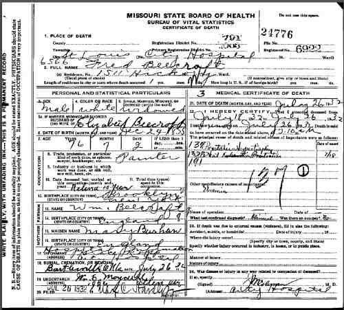 Died: 25 Jul 1932 - Saint Louis, Missouri, United States 5 Cause of Death: prostatic hypentrophy![]()