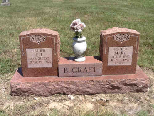 Buried: 7 Jul 1957 - Bluff Hill Cemetery, Idalia, Stoddard Co, MO 1 FamilySearch ID: 97B2-SLW Find A Grave ID: 32510169Spouse: Eli Sheley Becraft [5717] (1875-1965) Marr: 3 Mar 1897 - Castor, Stoddard, Missouri, United States 2