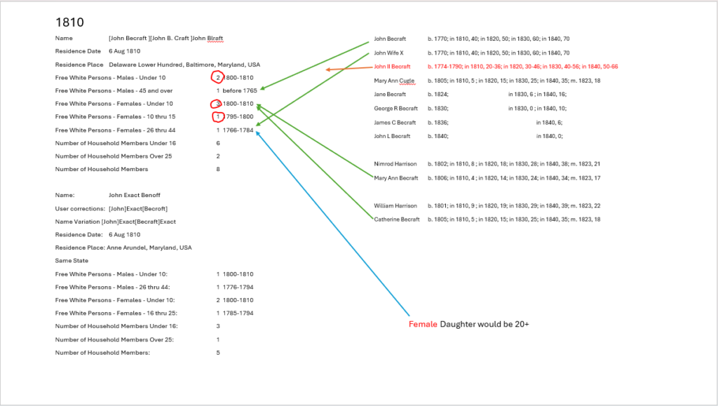 Census Records between 1790 and 1840 have all been attributed to John showing his family with Mary Ann. These records are attached in Family Search’s ancestry tree to this John. Should they be?