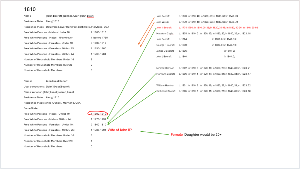 This John appears to have avoided any census for the period. Only 1810 has 2 John’s and might be one for this John, especially since he is associated with Anne Arundel, Maryland.